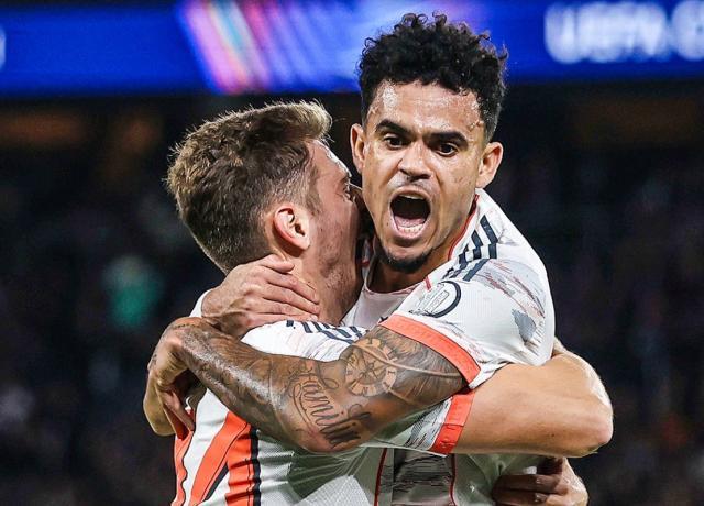 32’路易斯·迪亚斯抢断马尔基尼奥斯后突入禁区低射破门,拜仁2比0。
